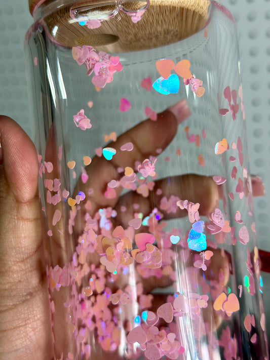 Hearts Snow Globe Glass Cup, Pink 16oz Glass Cup