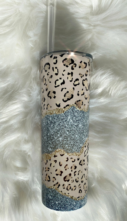 Glitter Cheetah Tumbler, Skinny Tumbler, 20oz Tumbler, Travel Coffee Mug, Glitter Tumbler