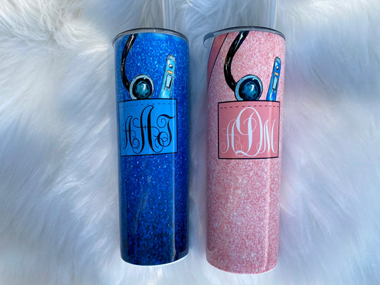 Nurse Tumbler, Glitter Skinny Cup, Scrubs 20oz Tumbler, Personalized Nurse Gift, Monogram Travel Coffee Mug, Glitter Tumbler