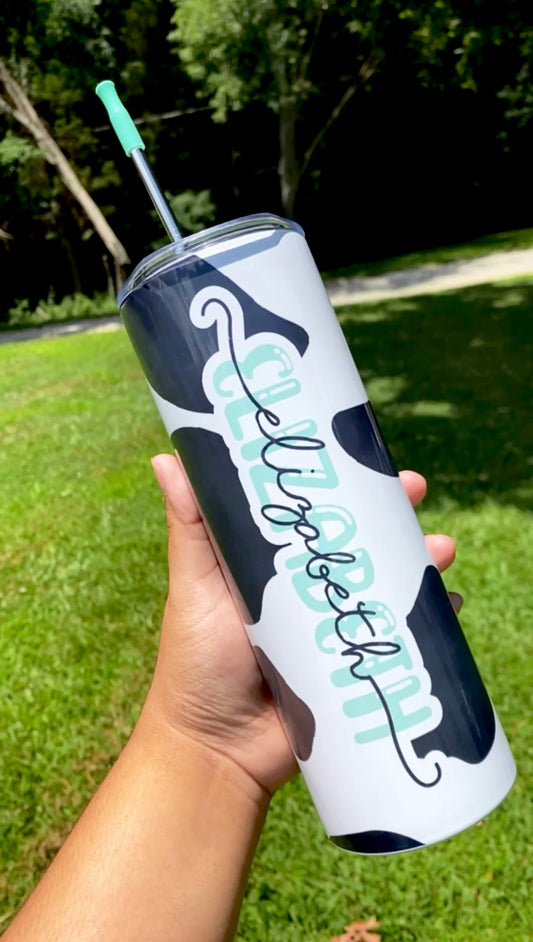 Cow Print Tumbler, Personalized Cup, 2ooz Tumbler, Custom Tumbler, Personalized Tumbler, Name Skinny Tumbler