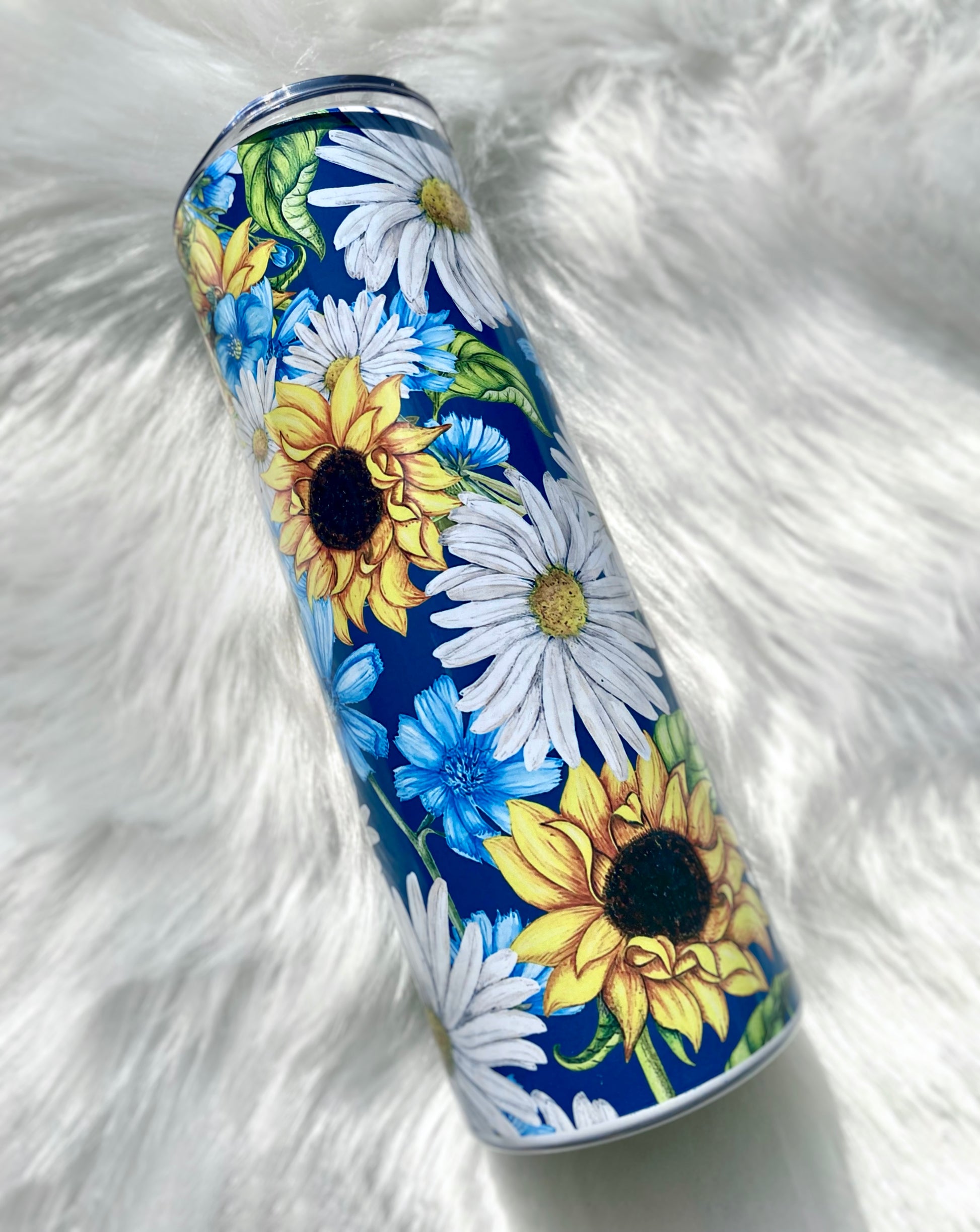 Sunflowers & Daisies Tumbler, Flower Cup, 20oz Skinny Tumbler